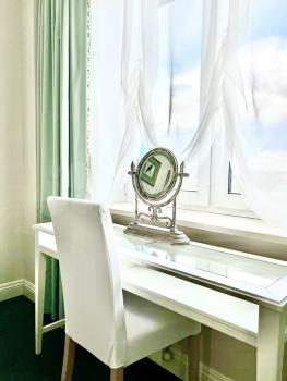 Огромный, во всю стену, шкаф-гардероб для одежды. Отдельная зона у окна, где можно работать, либо наносить мейкап.
