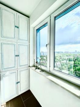 Квартира расположена на 15 этаже. Окна выходят на две стороны и открывают живописные виды на Москву