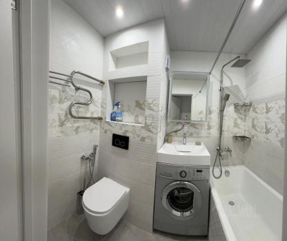 В ванной комнате: стиральная машина.
