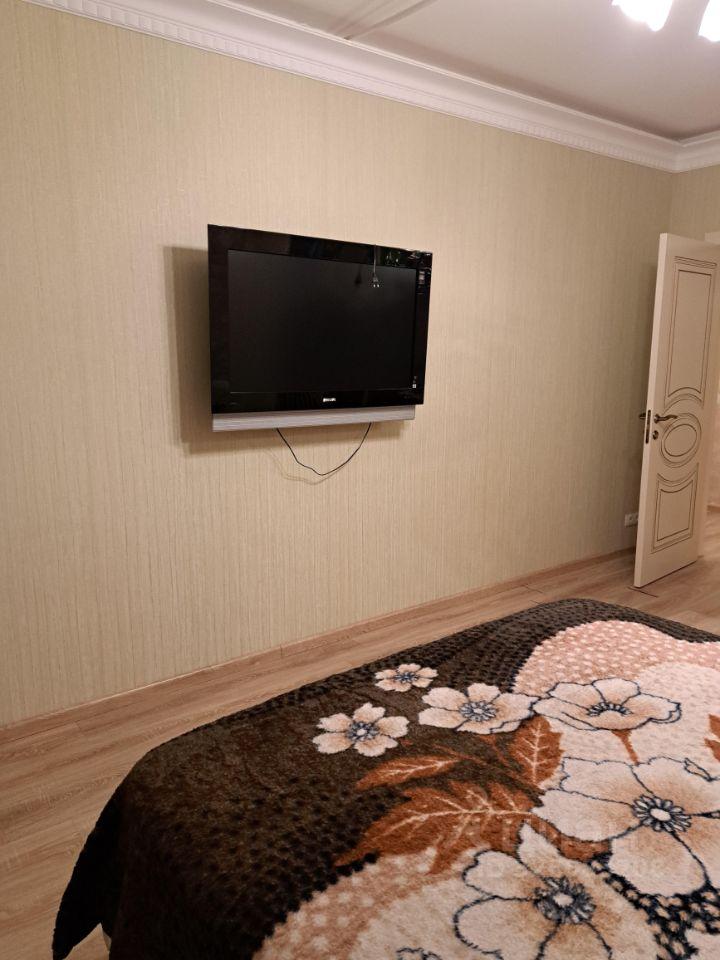 Квартира с косметическим ремонтом. В комнатах и на кухне есть вся необходимая мебель. Из техники в вашем распоряжении: кондиционер, холодильник, телевизор и стиральная машина. В квартире два санузла — один совмещен с ванной. У нас закрытый двор с охраной, видеодомофон на входе в подьезд и на этаже.