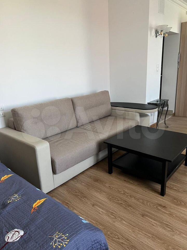 В квартире есть диван, обеденный стол,