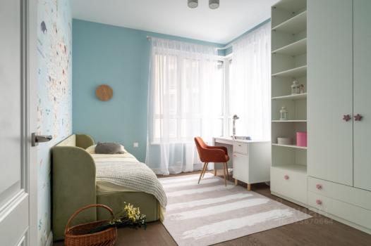 Пол — дубовый паркет с влагостойким сертифицированным лаком (подходит для детских комнат).