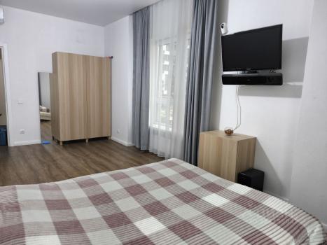 В квартире сделан хороший ремонт. Все комнаты полностью меблированы, на кухне есть необходимая мебель и техника: холодильник, посудомоечная машина, кондиционер, телевизор и стиральная машина с сушкой. Планировка квартиры включает один совмещённый и один отдельный санузел. Окна выходят во двор и на улицу, что обеспечивает хорошую освещённость и уют. Также есть два балкона.