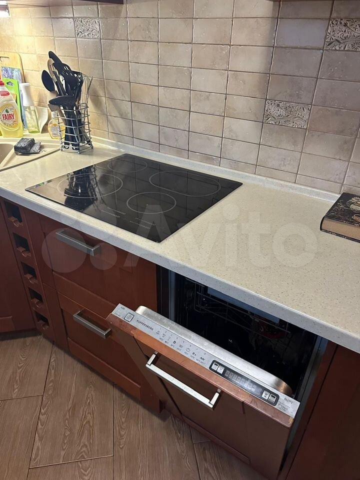 •Кухонный гарнитур со встроенной техникой (варочная панель, духовой шкаф, вытяжка), холодильник, микроволновая печь, электрочайник.