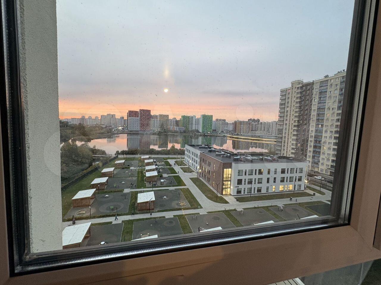 Окна на две стороны. Перед подъездом детская площадка, спортивная площадка. Вокруг дома ещё две детских площадки. Через дорогу - школа. Летом от сильного солнца закрывает листва деревьев у дома. Зимой наоборот солнце радует в середине дня прямым светом.