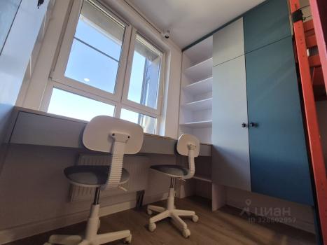 - Вторая комната может стать кабинетом или большой детской для одного или нескольких детей. Здесь также организована тгардеробная зона.