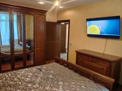 От собственника (агентов прошу не беспокоить), без комиссии! Сдается просторная трехкомнатная квартира, удобная для семейного проживания. В квартире две изолированных спальни (одна с двуспальной, вторая - с детской двухъярусной кроватью) и проходная большая гостиная с телевизором и двумя креслами, есть балкон. Санузел совмещенный. Во взрослой спальне утепленная большая лоджия. Рядом с кухней есть вместительная кладовка со стиральной машиной.