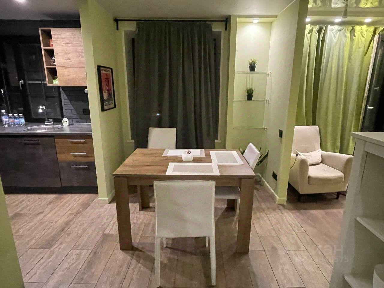 В квартире есть диван, обеденный стол,