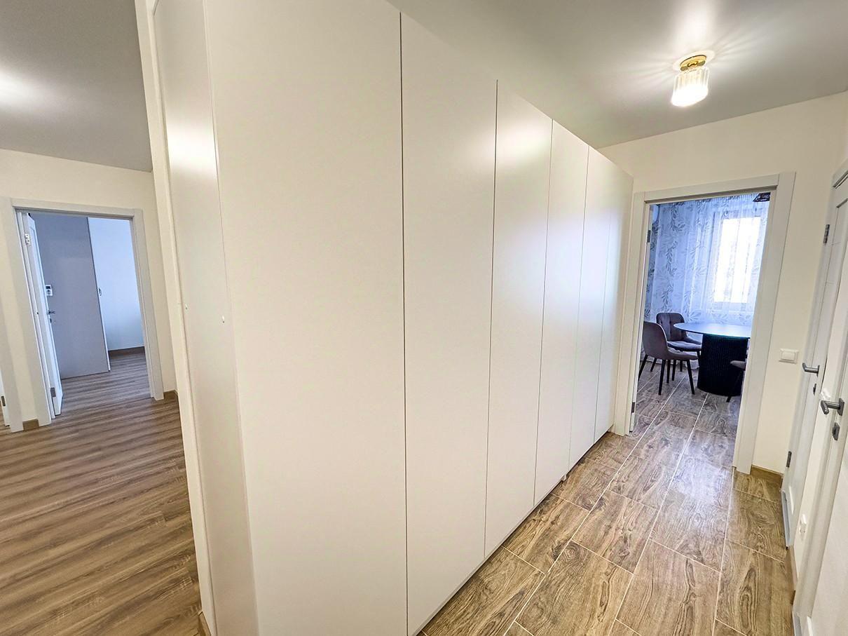Квартира состоит из трёх изолированных комнат, большой кухни 17м2, двух гардеробных, двух санузлов.