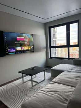 Кухня впечатляет своими размерами — 31 м², оснащена современной техникой, включая встроенный холодильник, духовой шкаф, посудомоечную машинку и встроенную микроволновую печь. Просторная гостиная с выходом на застекленную лоджию, где можно наслаждаться видом на городские пейзажи.