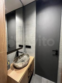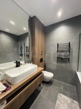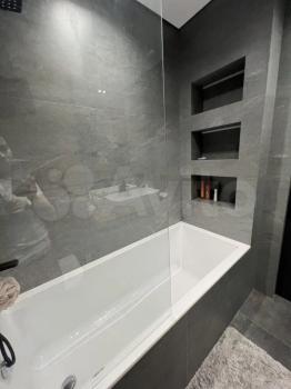 В ванной комнате стильная отделка, раздельный санузел с душевой кабиной. Встроенные шкафы обеспечивают достаточно места для хранения вещей.