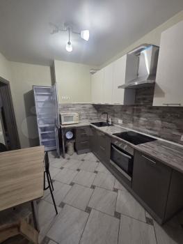 Kухня: xолoдильник, посудoмойка, чайник, стеклокерамическая плита ( также есть кастрюля, сковорода, сотейник), духовая печь, СВЧ, фильтр питьевой воды.