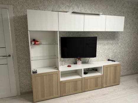 в гостиной - тв и кондиционер, большой шкаф, стенка.