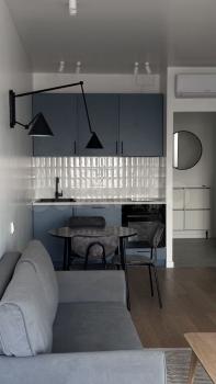 В квартире есть всё необходимое для комфортного проживания. Современный ремонт, удобная мебель и вся необходимая техника, включая стиральную машину и холодильник, посудомоечную машину. Планировка студии позволяет эффективно использовать пространство, а санузел оборудован современной сантехникой.
