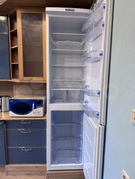 Техника: варочная панель, духовой шкаф, большой холодильник (300 л), стиральная машина, микроволновая печь, чайник