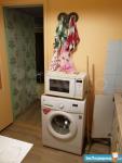 В комнате раскладной диван, большой вещевой шкаф с вешалкой и полками, комод, удобное кресло, современный смарт телевизор (32 диагональ). Есть высокоскоростной wi-fi интернет (входит в стоимость аренды вместе с коммунальными услугами).