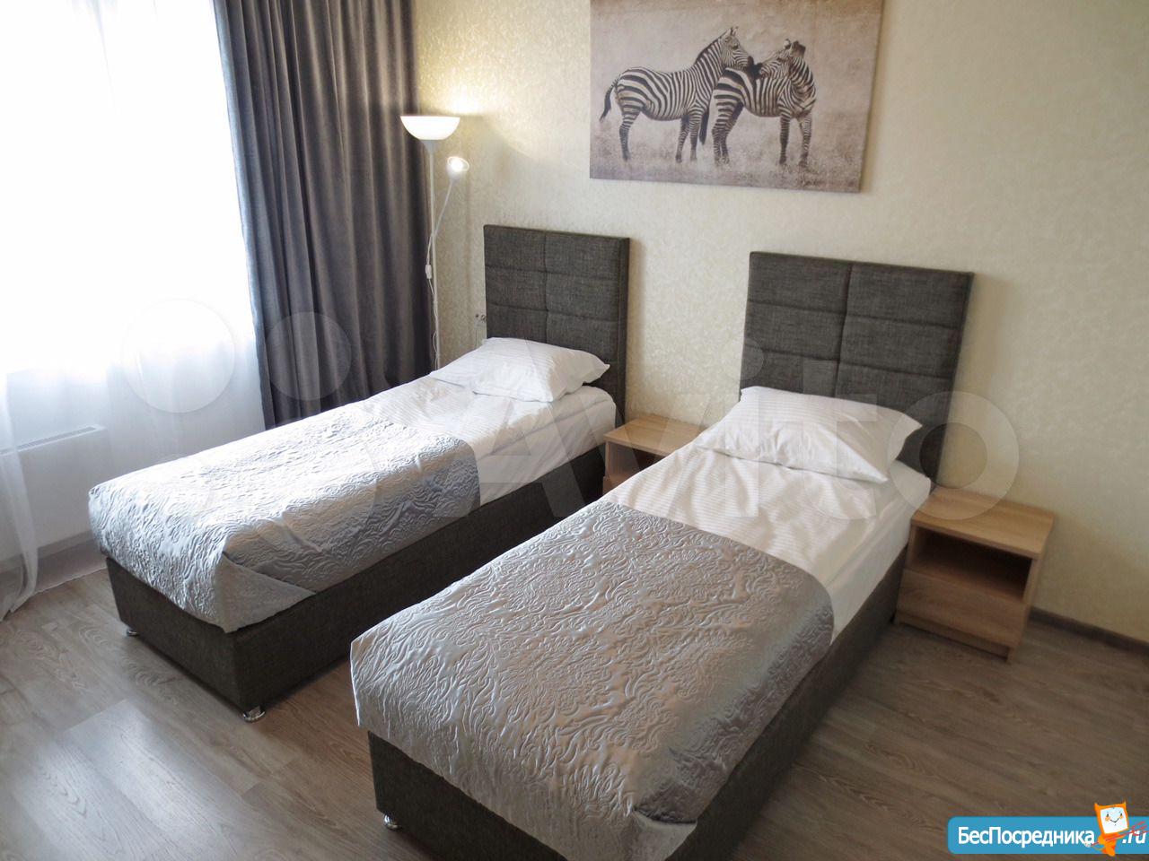 Кровати в комнате можно сдвинуть в одну 2-х спальную, или раздвинуть в две односпальных по вашему усмотрению.