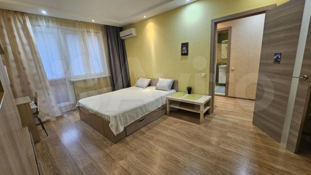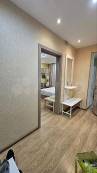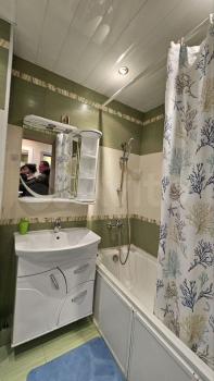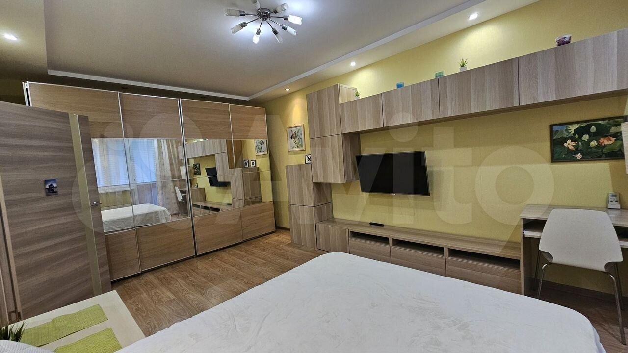 Ремонт в квартире косметический: потолок краска, стены обои, пол ламинат. Сан.узел совмещённый пол плитка, сантехника Grohe, ванная, с/машина. Кухня укомлектована: п/машиной, духовым шкафом, холодильником, вытяжкой микроволновкой, варочной панелью и комплектом посуды. В комнате: кровать 160x200, кондиционер, телевизор, диван, комоды и шкаф. И конечно, интернет.В подъезде консъерж. Закрытая придомовая территория с парковкой.