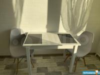 На кухне - встроенная мебель, большой холодильник, варочная панель газовая, микроволновка, посудомоечная машина, новый диван, стол, стул.