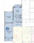 Большая комната – 19,97 м2, раскладывающийся диван на 2 спальных места, крепеж под телевизор, стеллажи для книг.