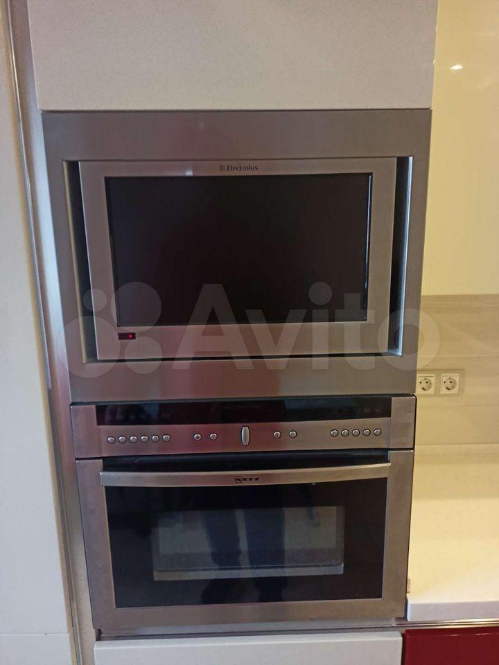 Встроенная кухня с техникой (холодильник, морозильная камера, индукционная плита, комби-шкаф (микроволновка, духовка, конвектор), вытяжка, посудомойка, телевизор.