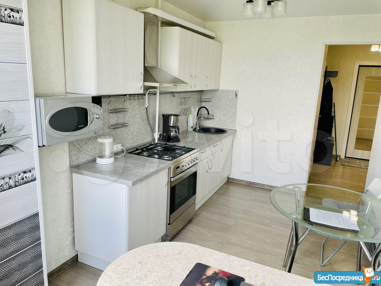 Светлая однокомнатная квартира с хорошим ремонтом и техникой в жилом массиве, дороги не слышно!