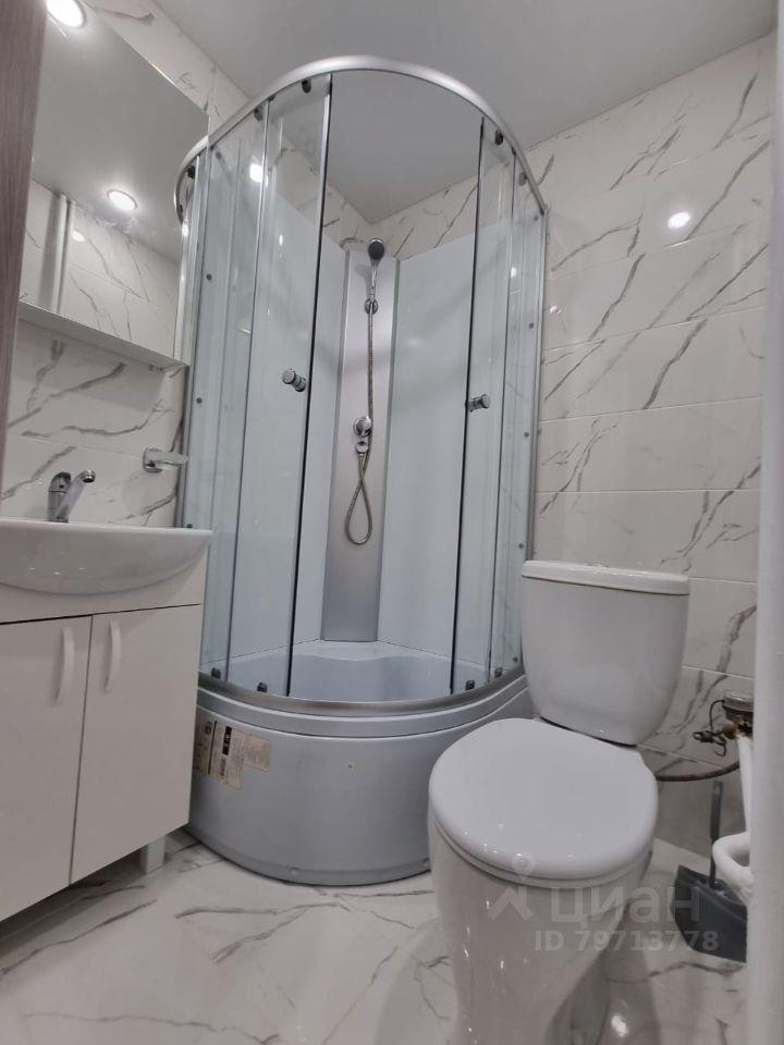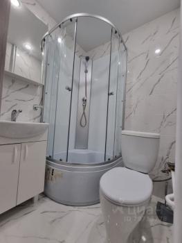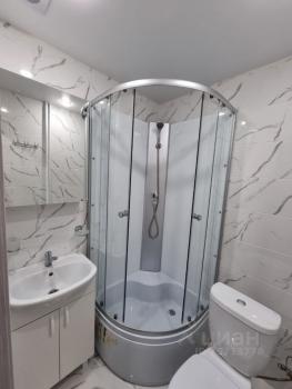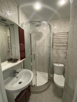 Санузел совмещенный, оснащен душевой кабиной и шкафчиками для хранения вещей.