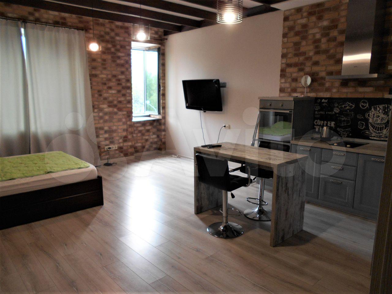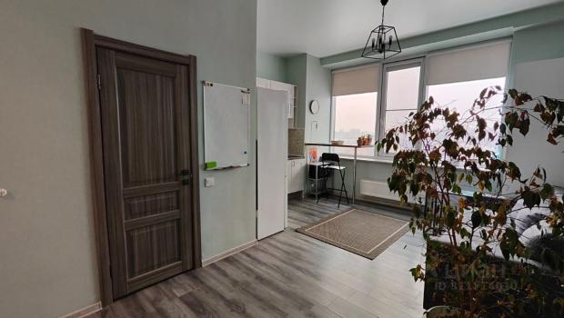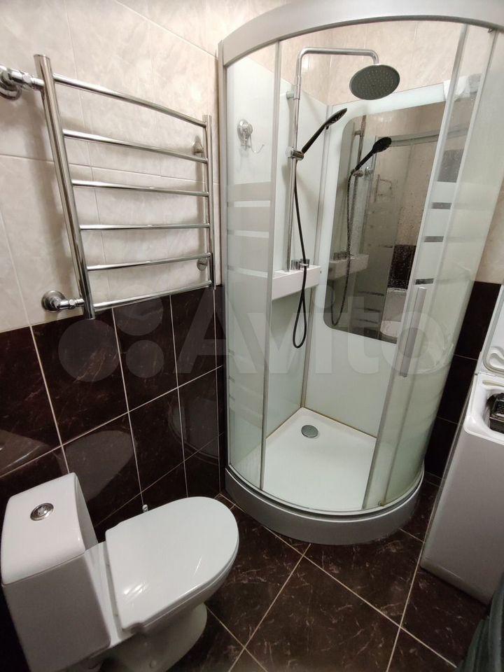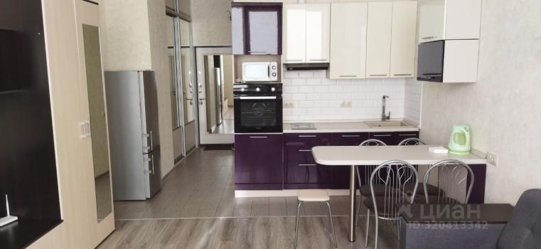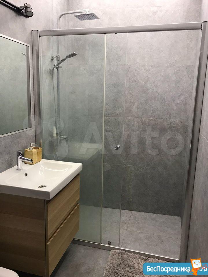 Квартира с дизайнерским ремонтом, что придаёт ей современный и стильный вид. В студии установлена вся необходимая техника: холодильник и стиральная машина. На кухне есть мебель, что позволяет с комфортом готовить и принимать пищу. В ванной комнате — душевая кабина.