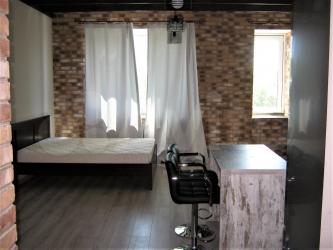 В студии размещена двуспальная кровать с подъемным механизмом, а также небольшой раскладной диванчик.