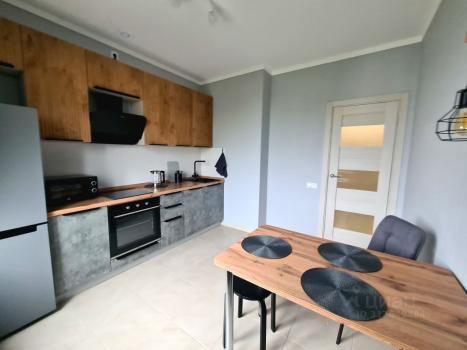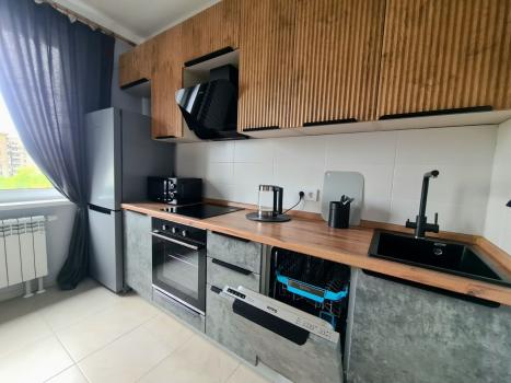 В квартире выполнен качественный современный ремонт, есть вся необходимая мебель и бытовая техника, включая посудомоечную машину.
