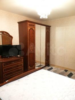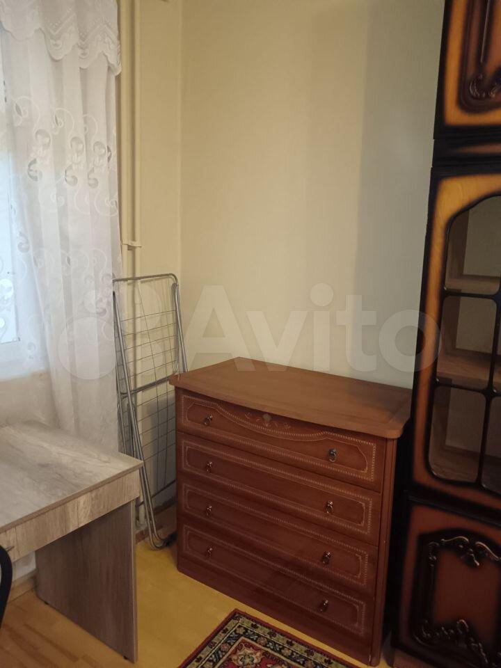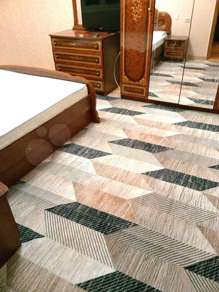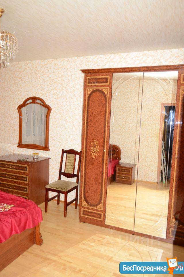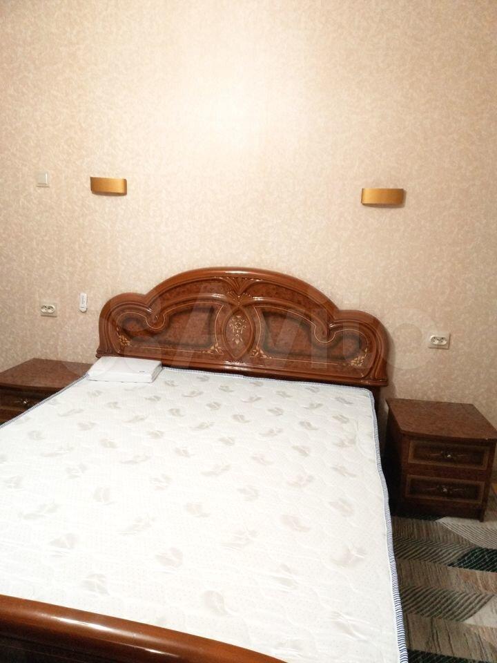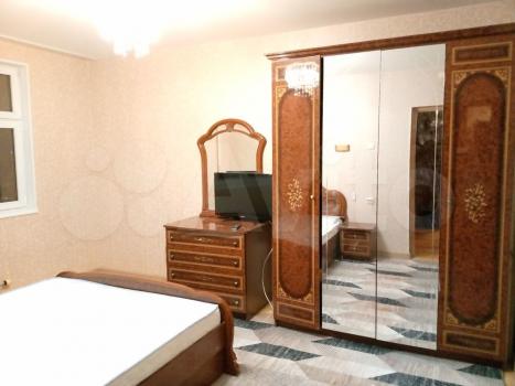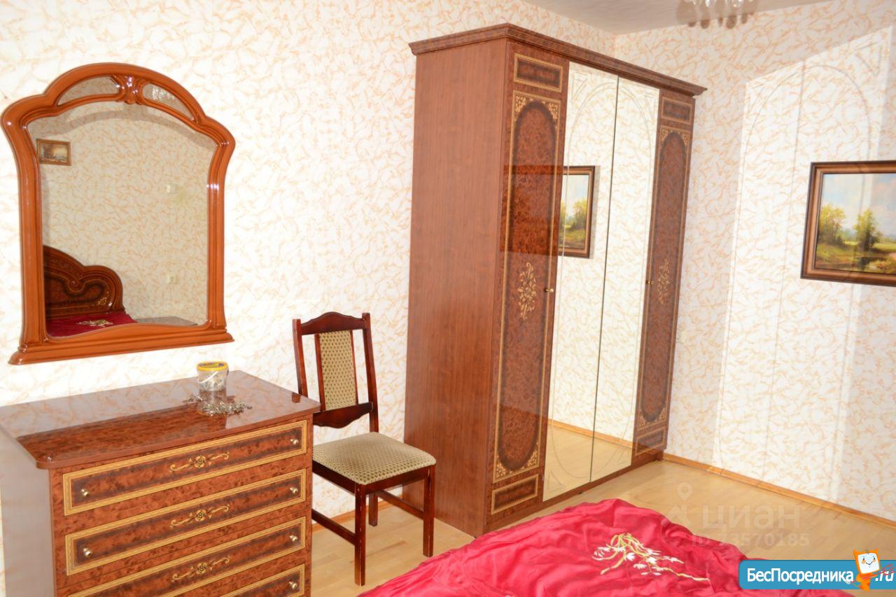 Комната 15м. В комнате полный гарнитур: большой гардероб с зеркалами, двуспальная кровать 180x200, большой комод, тумбочки, настенное зеркало. Окна во двор.