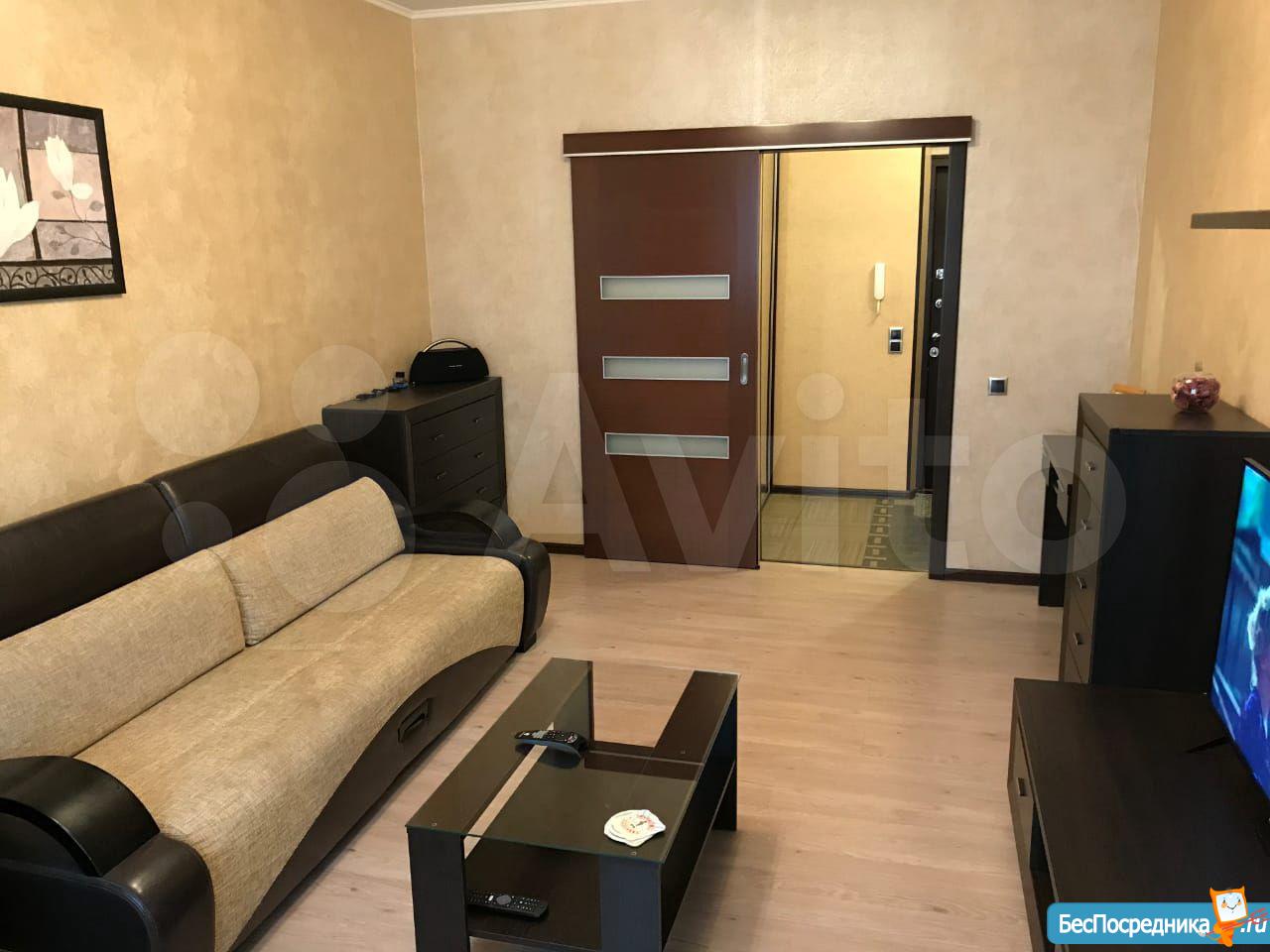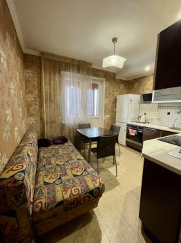 Сдается в долгосрочную аренду однокомнатная просторная квартира. На данный момент диван заменен на новую двуспальную кровать. Полностью укомплектована: сплит-система, холодильник, тв, стиральная машина. Всегда есть парковочное место.