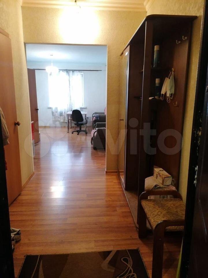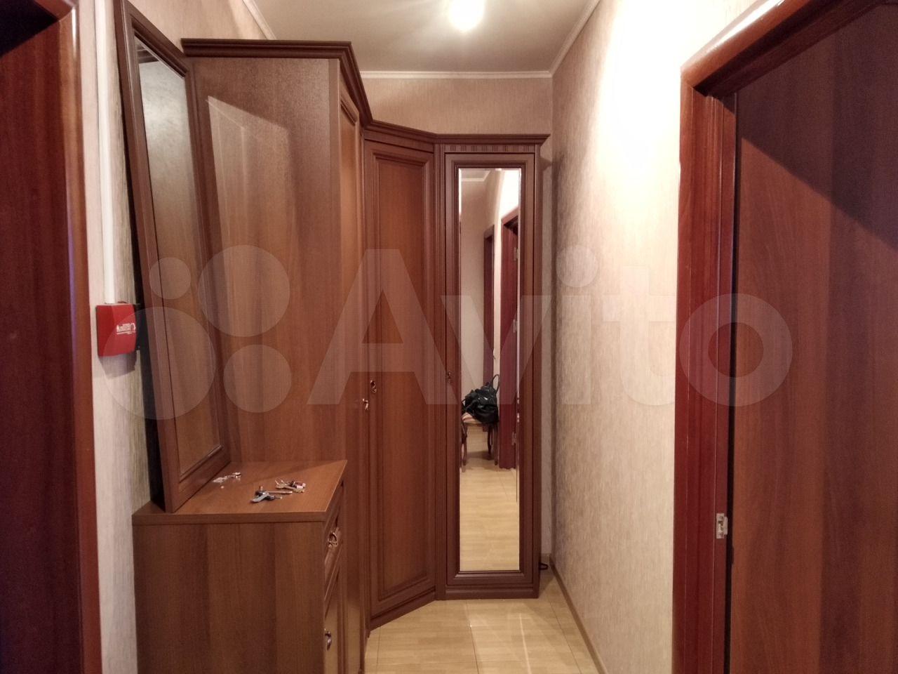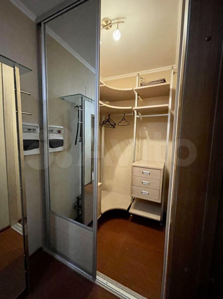 В комнате большой шкаф с зеркалом, новый раскладной диван, тумба. Ещё 2 больших шкафа в прихожей. Кухня большая с диваном.