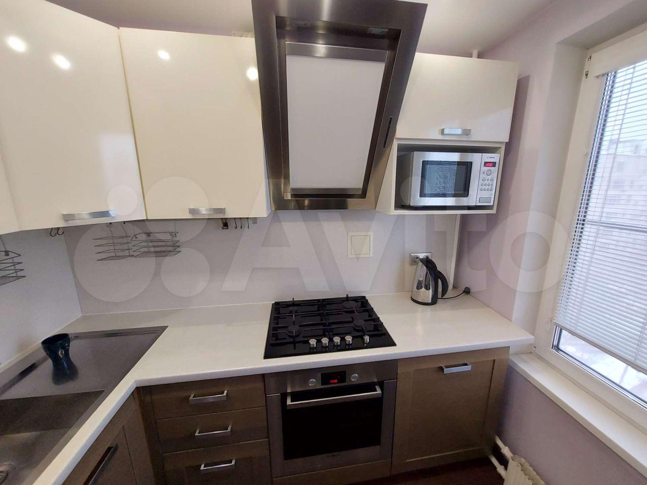Кухонный гарнитур с газовой плитой с электроподжигом конфорок, холодильник, микроволновая печь, эл. чайник, новая стиральная машинка.