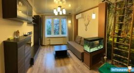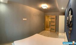 - Двe изолированные жилые комнаты. В спальне двуспальная кровать с подъёмным механизмом, которую можем заменить на кровать-трансформер Неmnеs IКЕА. Диван в зале раскладывается для приёма гостей, есть ниша для хранения.