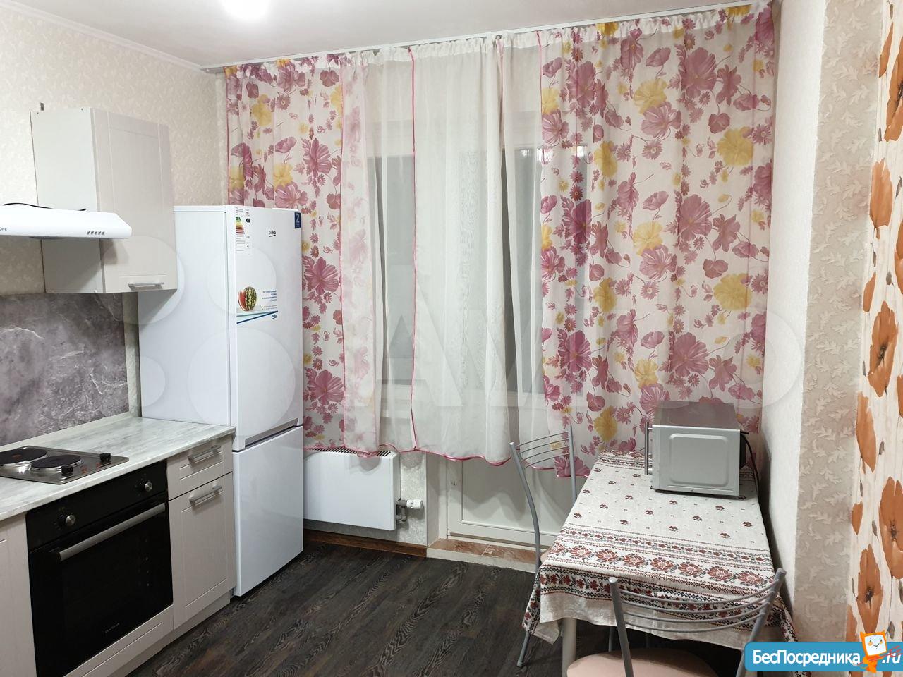 Светлая 1-комнатная квартира с балконом, сдаётся впервые. Доступна к заселению с 21 марта. Квартира оснащена кухонным гарнитуром, всей необходимой мебелью и бытовой техникой. Есть плита, стиральная машина, телевизор, чайник и встроенный холодильник. Интернет проведён. Окна выходят во двор.
