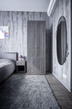 В изолированной спальне расположена большая кровать,прикроватные тумбы, шкаф, телевизор. Установлен кондиционер.