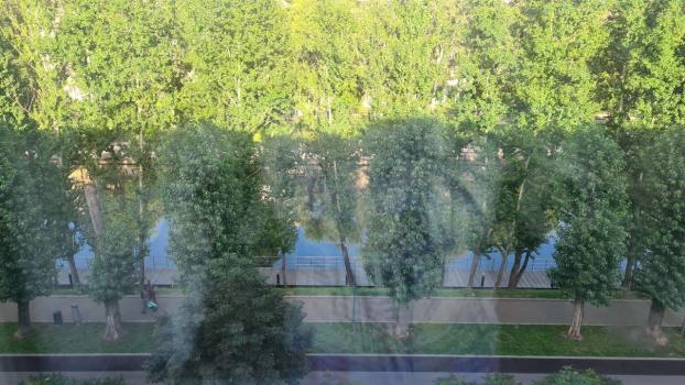 Рядом Краснопресненский парк, пруд, спортивные площадки, Москва-река, небоскребы смотрят в окно.
