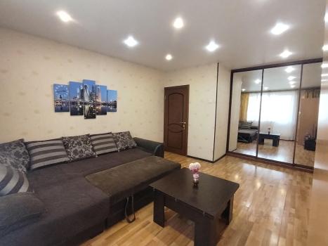 Евроремонт дизайнерский: люксовые тканевые обои, подвесные и натяжные потолки, керамогранит по заказу, двухкамерные стеклопакеты, ламинат, зеркальные встроенные шкафы и двери, большая лоджия с видом во двор, итальянская сантехника и ванна. Санузел раздельный.
