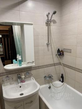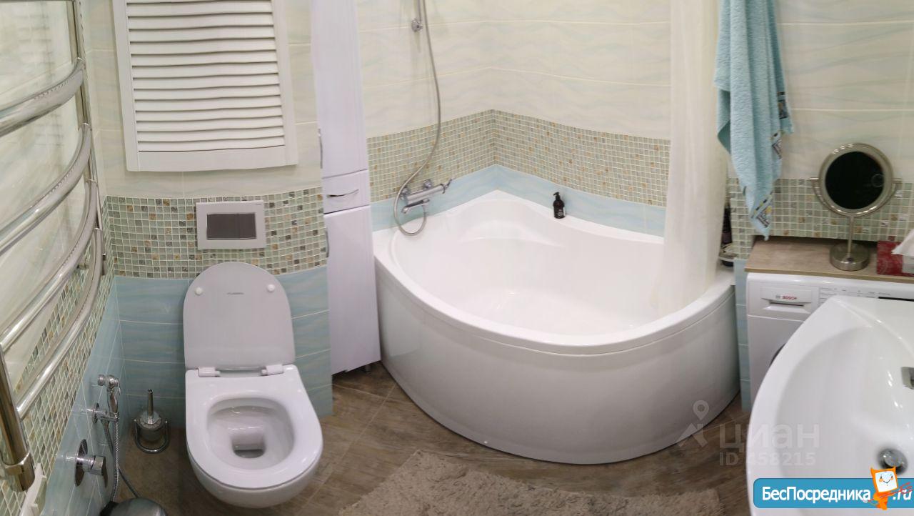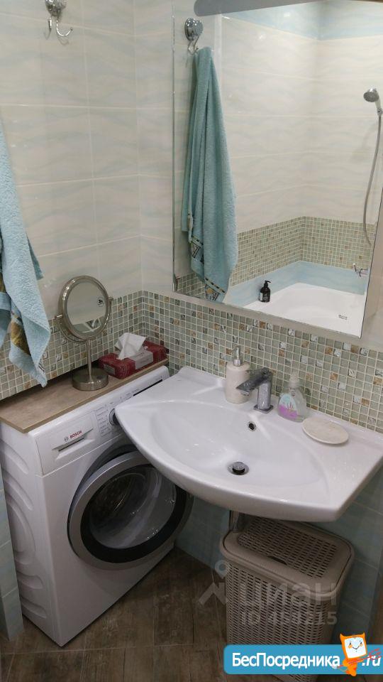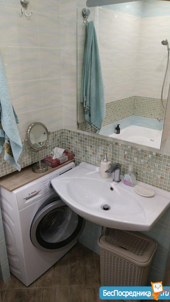Ванная комната оборудована душевой кабиной и стиральной машиной.