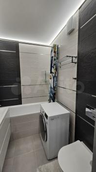 Совмещенный санузел выполнен в современном стиле.