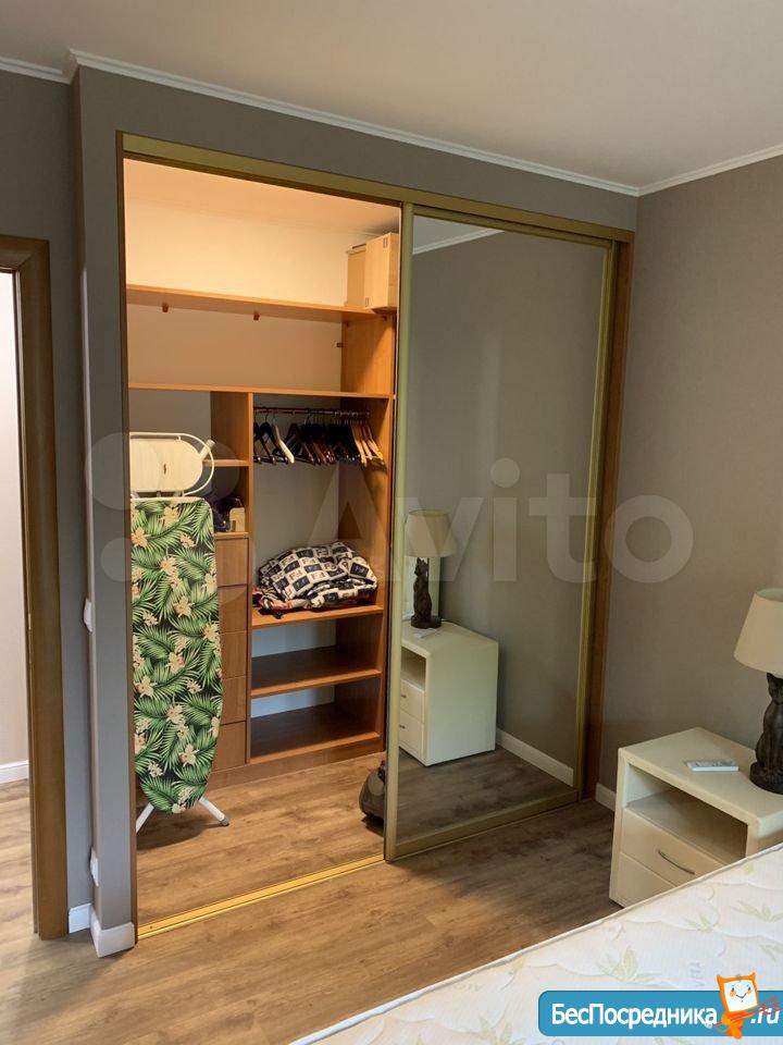 2-х комнатная квартира. Сделан евро ремонт менее года назад. Сдается со всей мебелью и всем необходимым для проживания, сделана большая гардеробная, установлена сплит система, лоджия в спальне. Кухонный гарнитур встроенный со всей бытовой техникой. Квартира теплая: окна пластиковые, лоджия утеплена. Район тихий, далеко от проезжей части. Солнечная светлая квартира, хороший вид из окна. Окна выходят на зеленый двор, рядом школа и детский сад, развитая инфраструктура (рядом Пятерочка, Магнит). Квартира сдается первый раз, гражданам РФ. Стоимость аренды без счетчиков (свет, вода), но включает КУ.