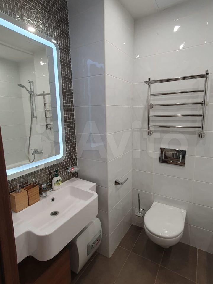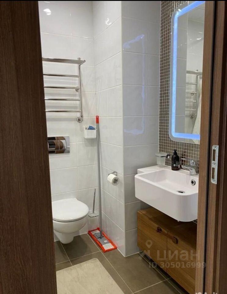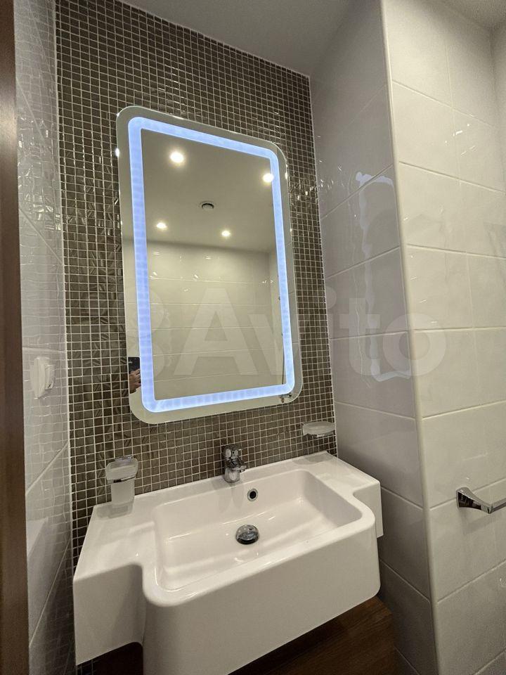 Комфортная ванная комната: большое зеркало с LЕD-подсветкой, полноценная ванна;