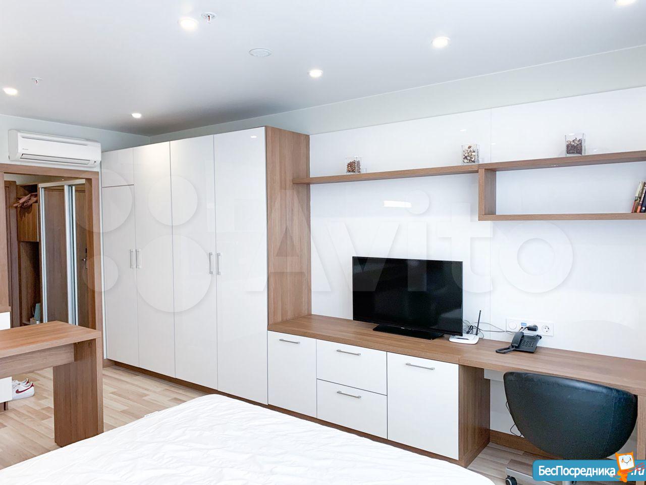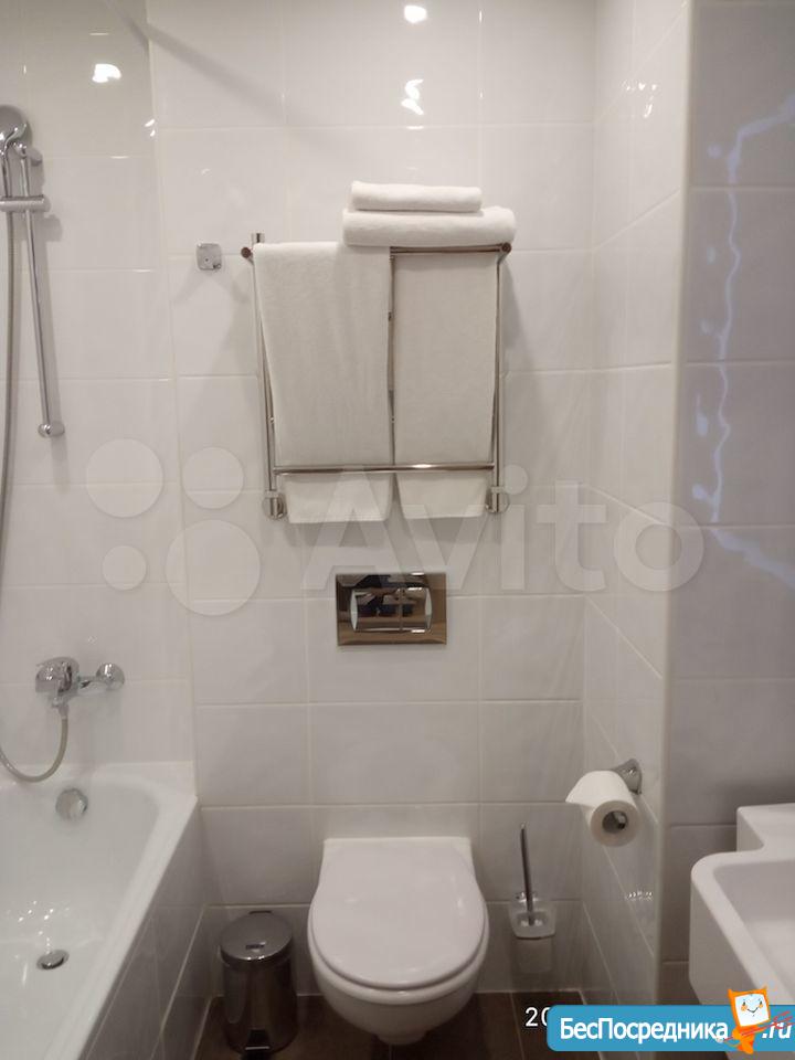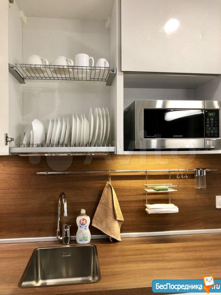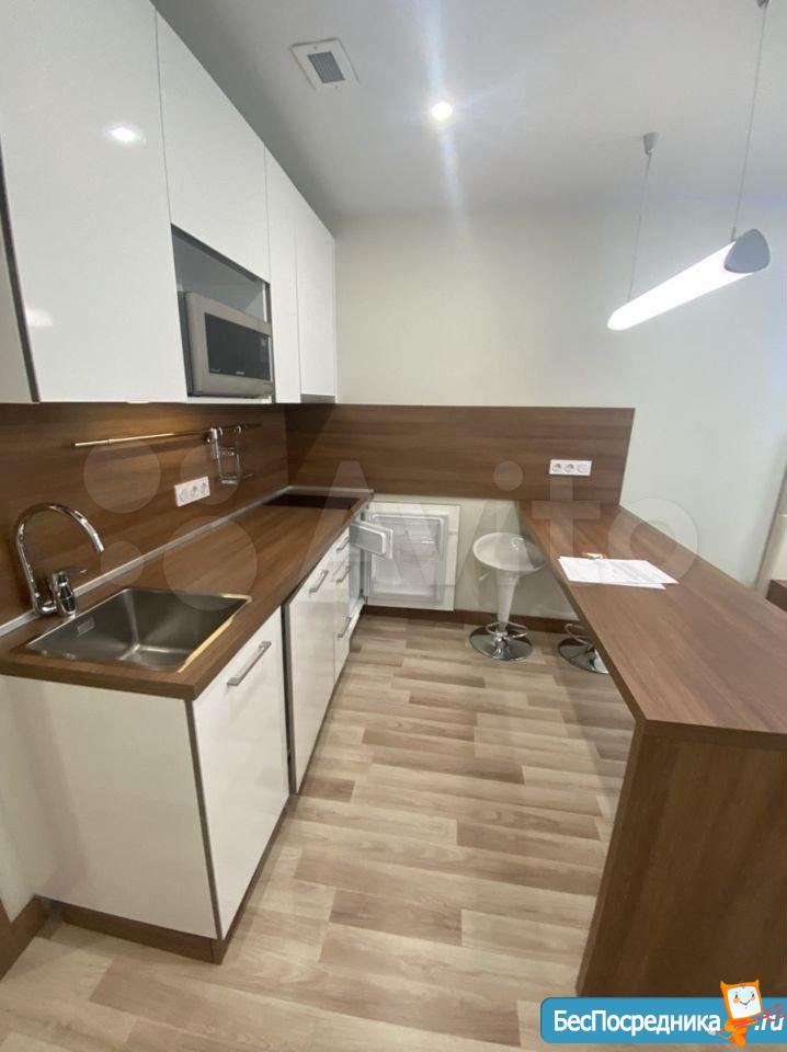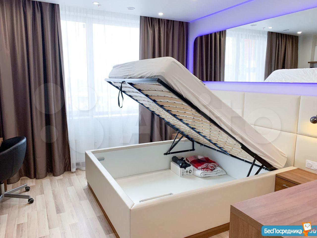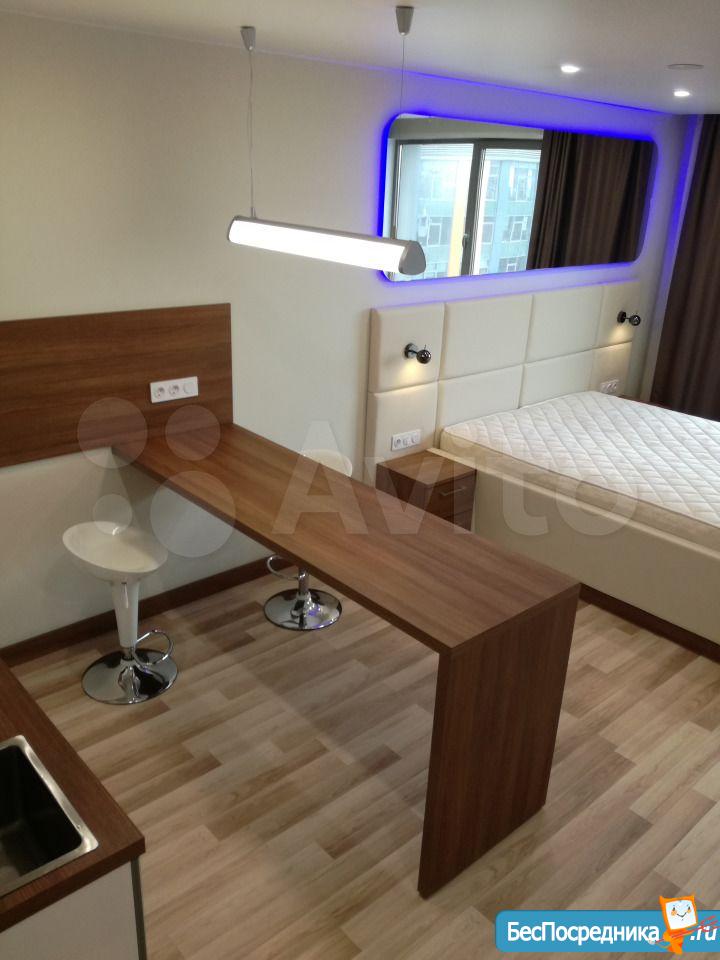 Студия с евроремонтом, от собственника, на долгий срок. Есть вся необходимая техника и даже посуда. Кондиционер. Холодильник. Телевизор. Варочная панель. Вытяжка. Стиральная машина. СВЧ (микроволновка). Подземный и наземный паркинг. 4 скоростных лифта. Дом охраняемый, бесплатная парковка под шлагбаум. На первом этаже ресепшн, в любое время суток можно позвонить и обратиться с просьбой. На ваш этаж чужие люди не поднимутся, так как подъем на лифте осуществляется по ключу, который есть только у жильцов дома. Очень безопасный дом.