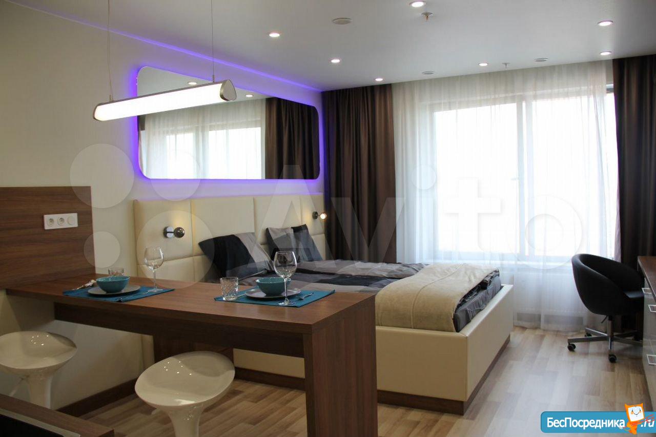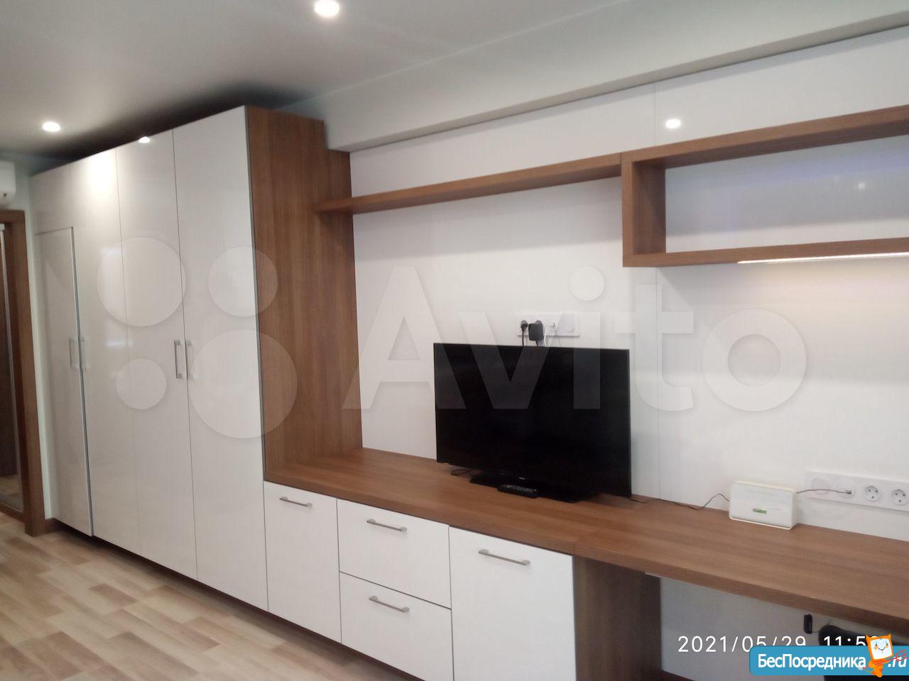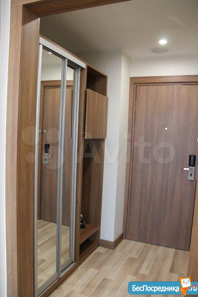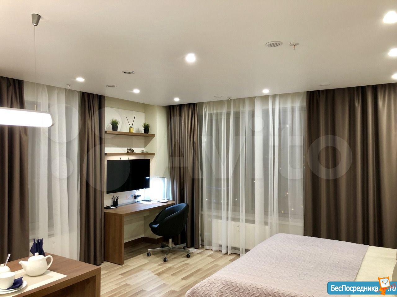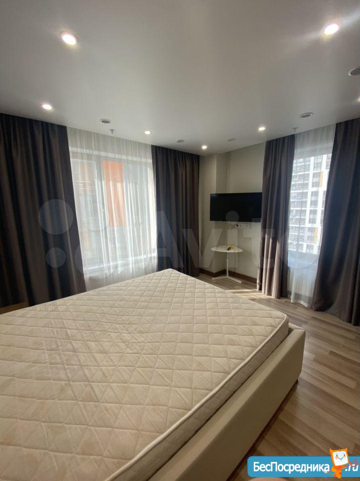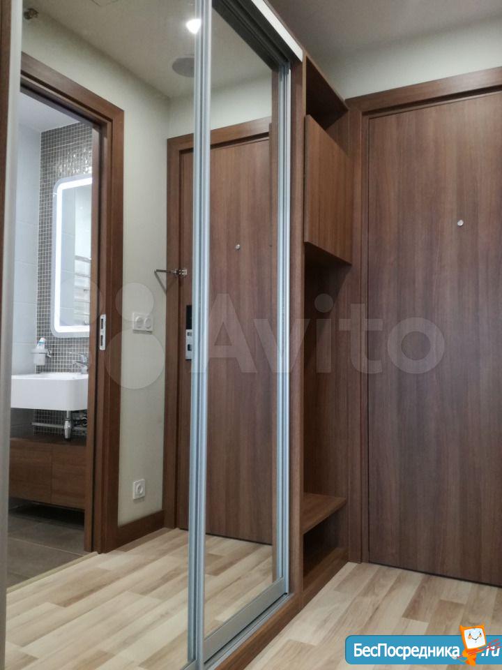 Студия с евроремонтом, от собственника, на долгий срок. Есть вся необходимая техника и даже посуда. Кондиционер. Холодильник. Телевизор. Варочная панель. Вытяжка. Стиральная машина. СВЧ (микроволновка). Подземный и наземный паркинг. 4 скоростных лифта. Дом охраняемый, бесплатная парковка под шлагбаум. На первом этаже ресепшн, в любое время суток можно позвонить и обратиться с просьбой. На ваш этаж чужие люди не поднимутся, так как подъем на лифте осуществляется по ключу, который есть только у жильцов дома. Очень безопасный дом.