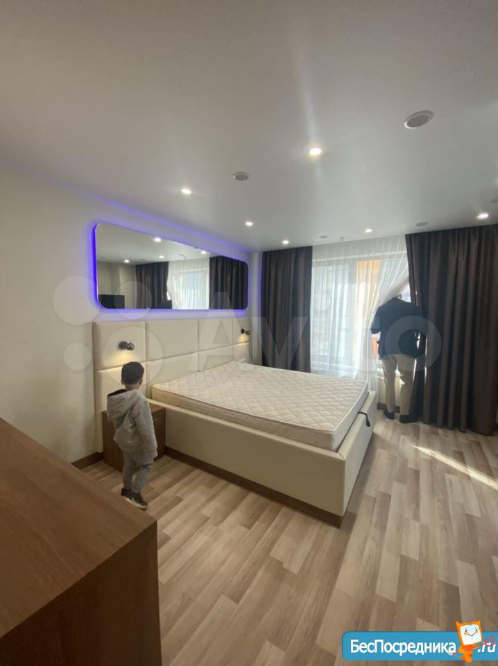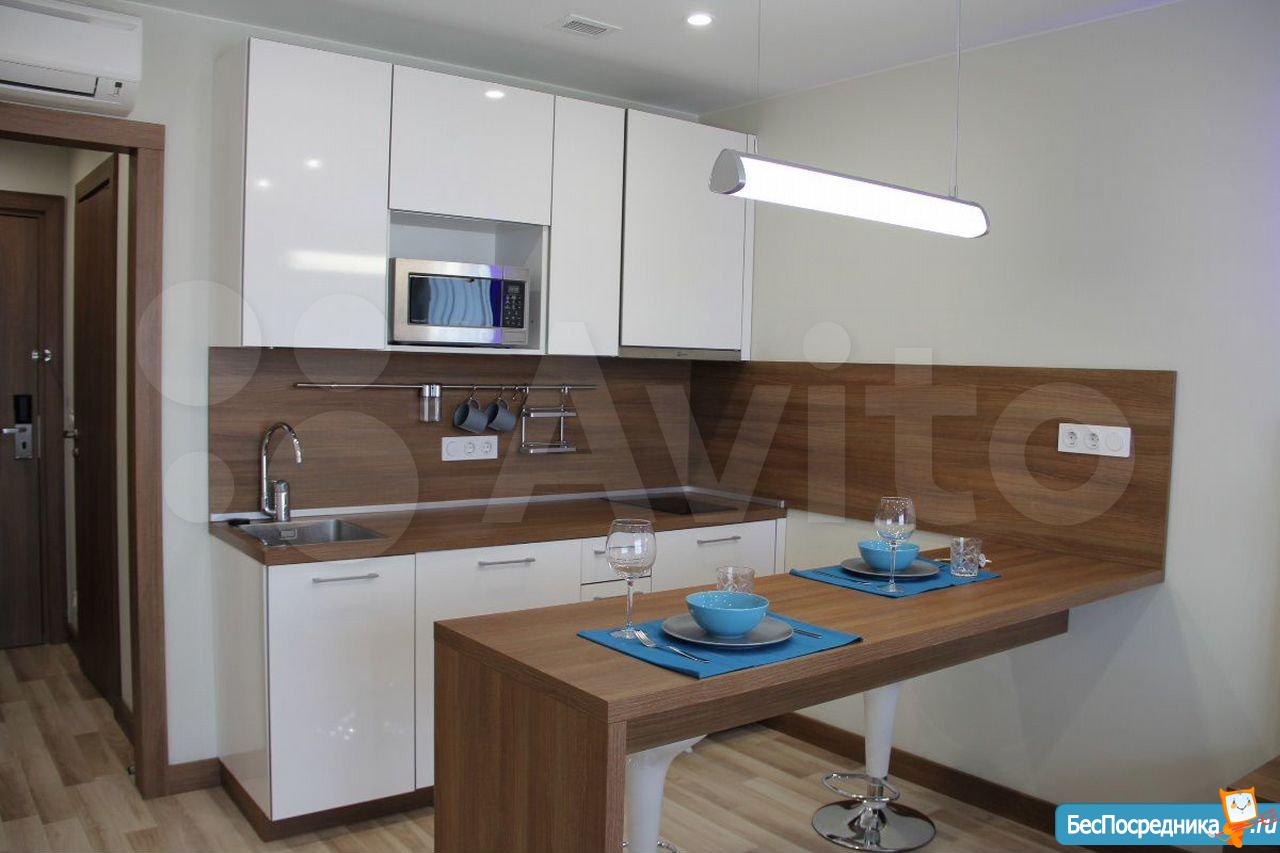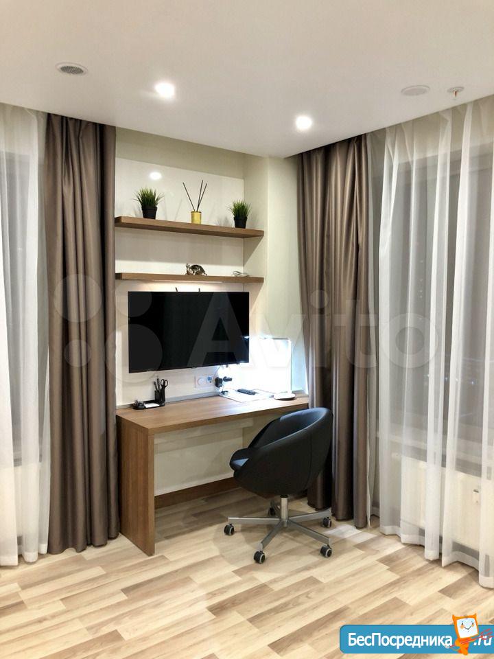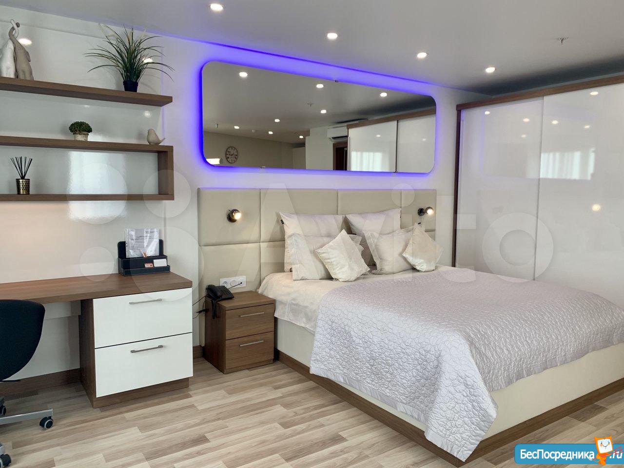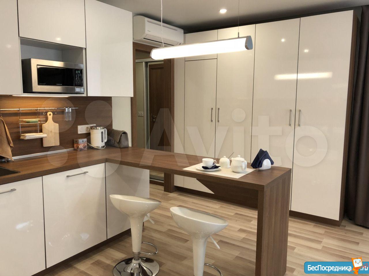 Студия с евроремонтом, от собственника, на долгий срок. Есть вся необходимая техника и даже посуда. Кондиционер. Холодильник. Телевизор. Варочная панель. Вытяжка. Стиральная машина. СВЧ (микроволновка). Подземный и наземный паркинг. 4 скоростных лифта. Дом охраняемый, бесплатная парковка под шлагбаум. На первом этаже ресепшн, в любое время суток можно позвонить и обратиться с просьбой. На ваш этаж чужие люди не поднимутся, так как подъем на лифте осуществляется по ключу, который есть только у жильцов дома. Очень безопасный дом.