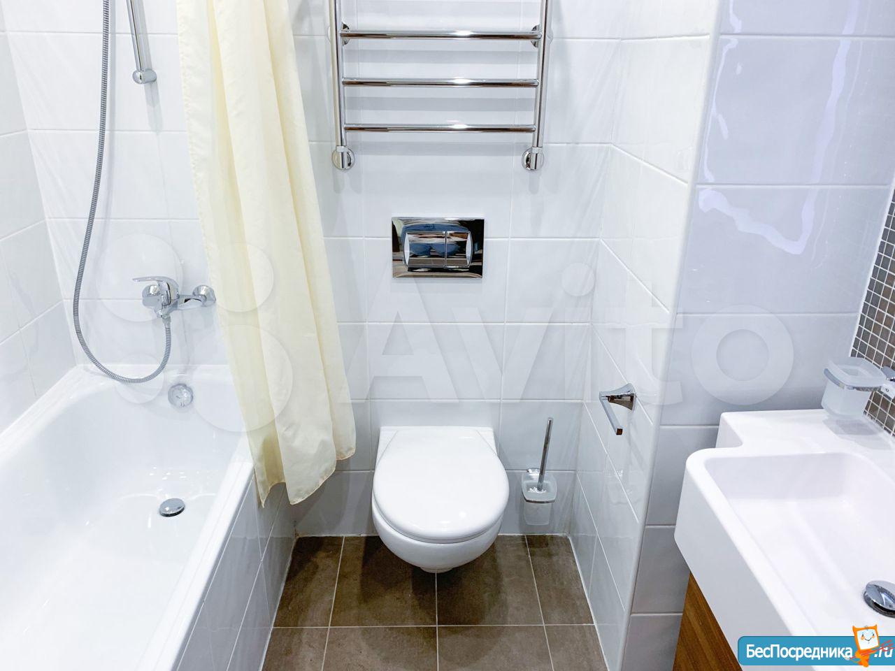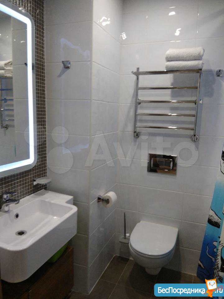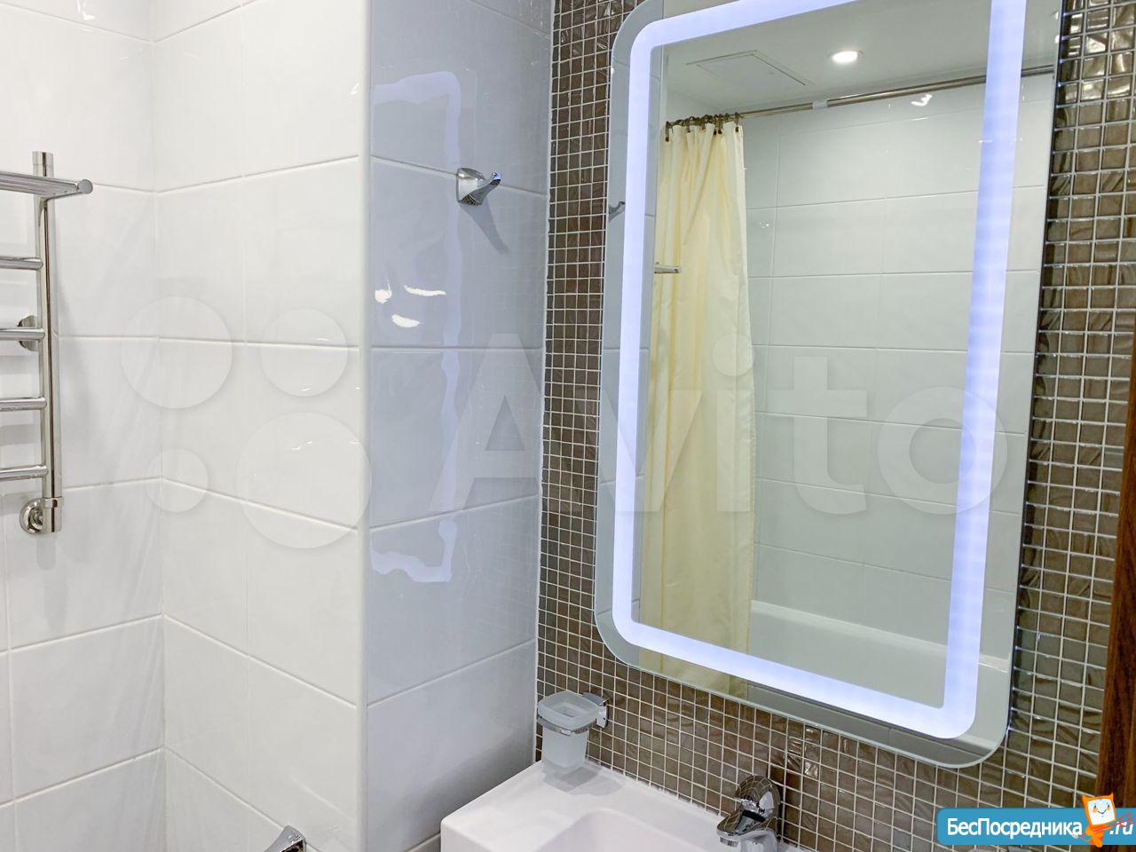 ✓ Комфортная ванная комната: большое зеркало с LED-подсветкой, ванна, душ с массажной насадкой