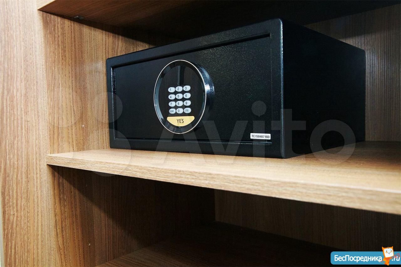 Много места для хранения вещей, большие вместительные шкафы, тумбочки и кровать с подъёмном механизмом. Под кроватью очень много места, как в большом шкафу. Есть рабочее место с удобным мягким стулом на колёсах, обеденная зона с барной стойкой, сейф. Вокруг зеркала красивая синяя подсветка, которая очень эффектно выглядит в вечернее время. По желанию ее можно выключить и включить. В коридоре ковровое покрытие и ежедневные уборки.