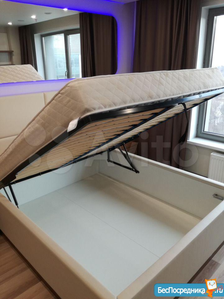 Двуспальная кровать с подъемным механизмом и местом для хранения;