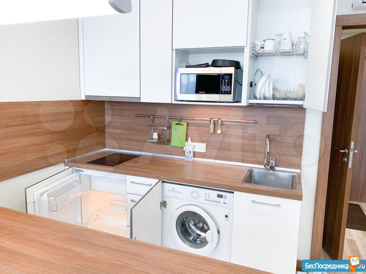 ✓ Кухня, оснащенная встроенной бытовой техникой от ведущих производителей: микроволновая печь, холодильник, керамическая варочная панель